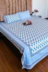 Blue Blossom Jaipuri Bedsheet With Matching 2 Pillow Covers