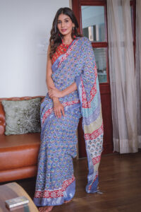compliment a woman's silhouette. Linen sarees blend comfort and convenience as they do not cling to the body. The maintenance of linen sarees is super easy as there is no hassle of